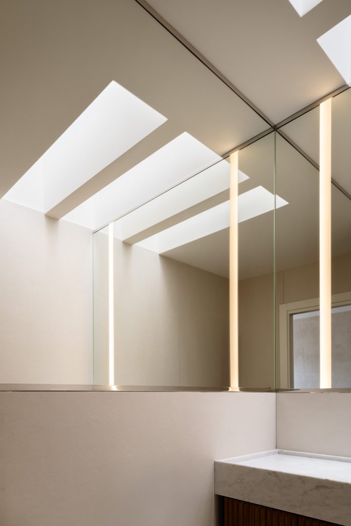 La luce è la vera protagonista del progetto. Non solo illumina, ma plasma lo spazio, ne rivela la profondità e restituisce vita alle superfici. È la luce, nella sua relazione con l’ombra, a generare materia.