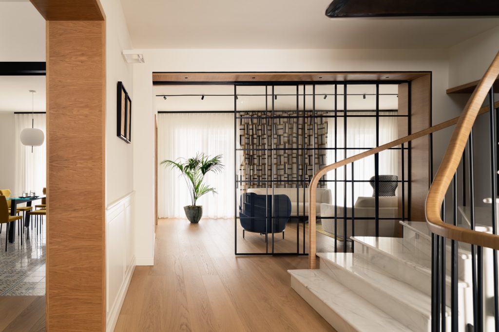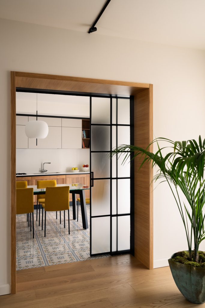 I portali tematici scandiscono le soglie tra le diverse funzioni, preparando il passaggio dagli spazi conviviali alle zone più intime.