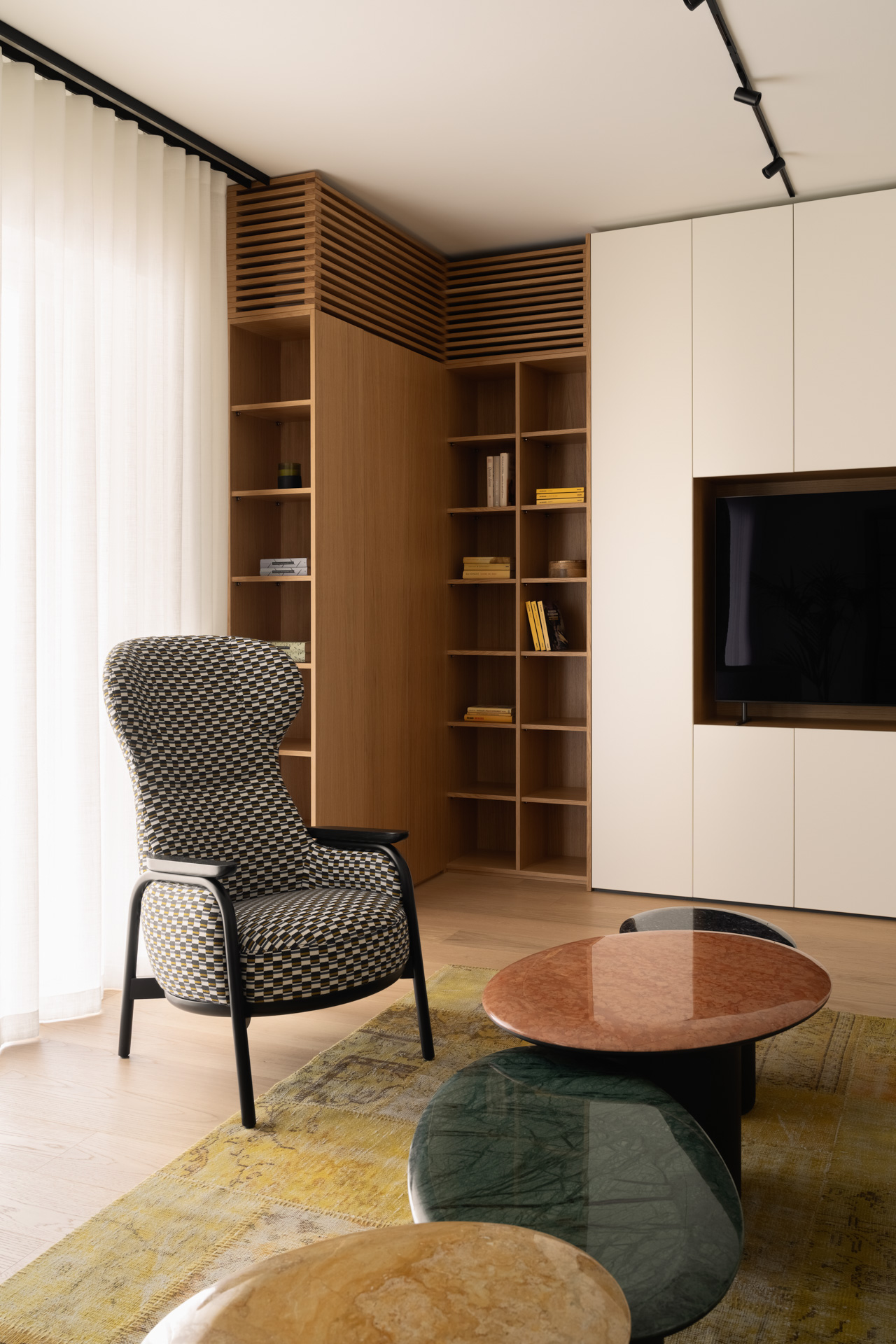 L’atmosfera, misurata e accogliente, traduce il linguaggio del progetto in una dimensione più intima e riflessiva.