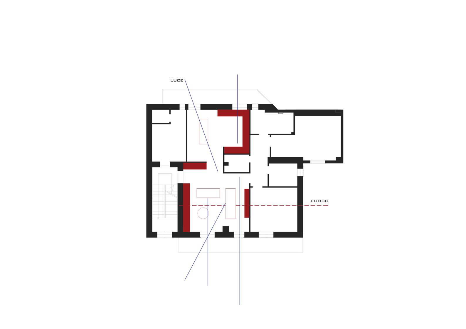Il concetto cardine del progetto è l’eliminazione del superfluo per risolvere il sistema spazio con soli tre materiali e pochi elementi che organizzano gli ambienti.